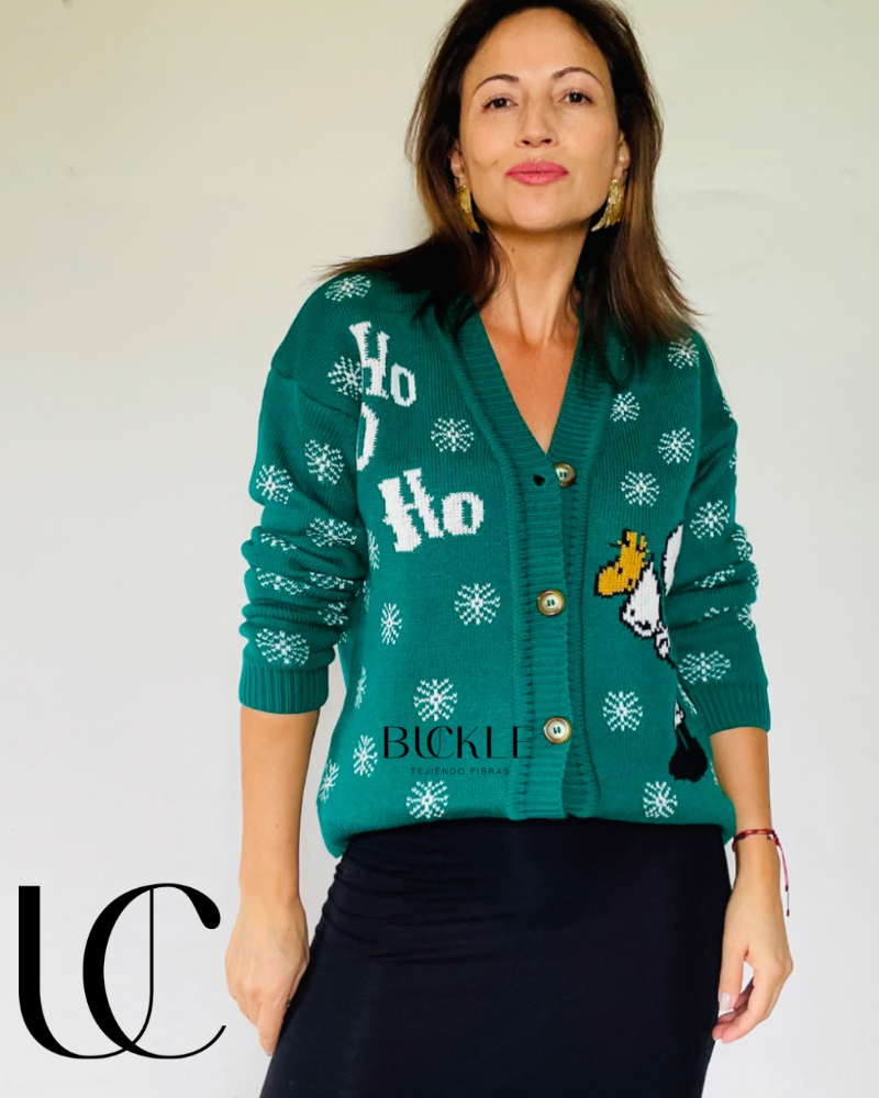 Lo que hace único a "Snoppy" es la adorable imagen tejida del icónico personaje Snoopy, que le da un toque festivo y lleno de encanto. Ideal para quienes buscan algo alegre y diferente para las fiestas, este cardigan es la opción perfecta para tus reuniones navideñas o para disfrutar de momentos especiales en casa.