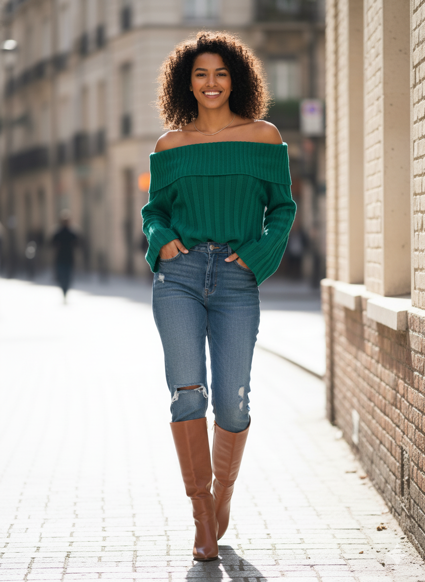 Con diseño regular fit y talla única, se adapta cómodamente a diferentes tipos de cuerpo, brindando un ajuste favorecedor. Su cuello bandeja deja los hombros al descubierto, aportando un aire sensual y sofisticado ideal para ocasiones casuales o salidas especiales.