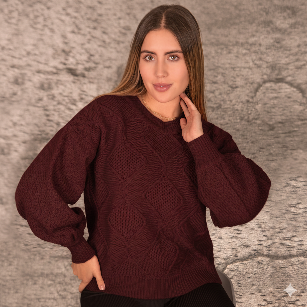 Confeccionado en una suave mezcla de algodón y acrílico, este buzo es ligero, cálido y fácil de llevar. Su diseño de trenzas en el frente añade un toque clásico y elegante, mientras que el cuello redondo le da un aire casual que lo hace versátil para cualquier ocasión.