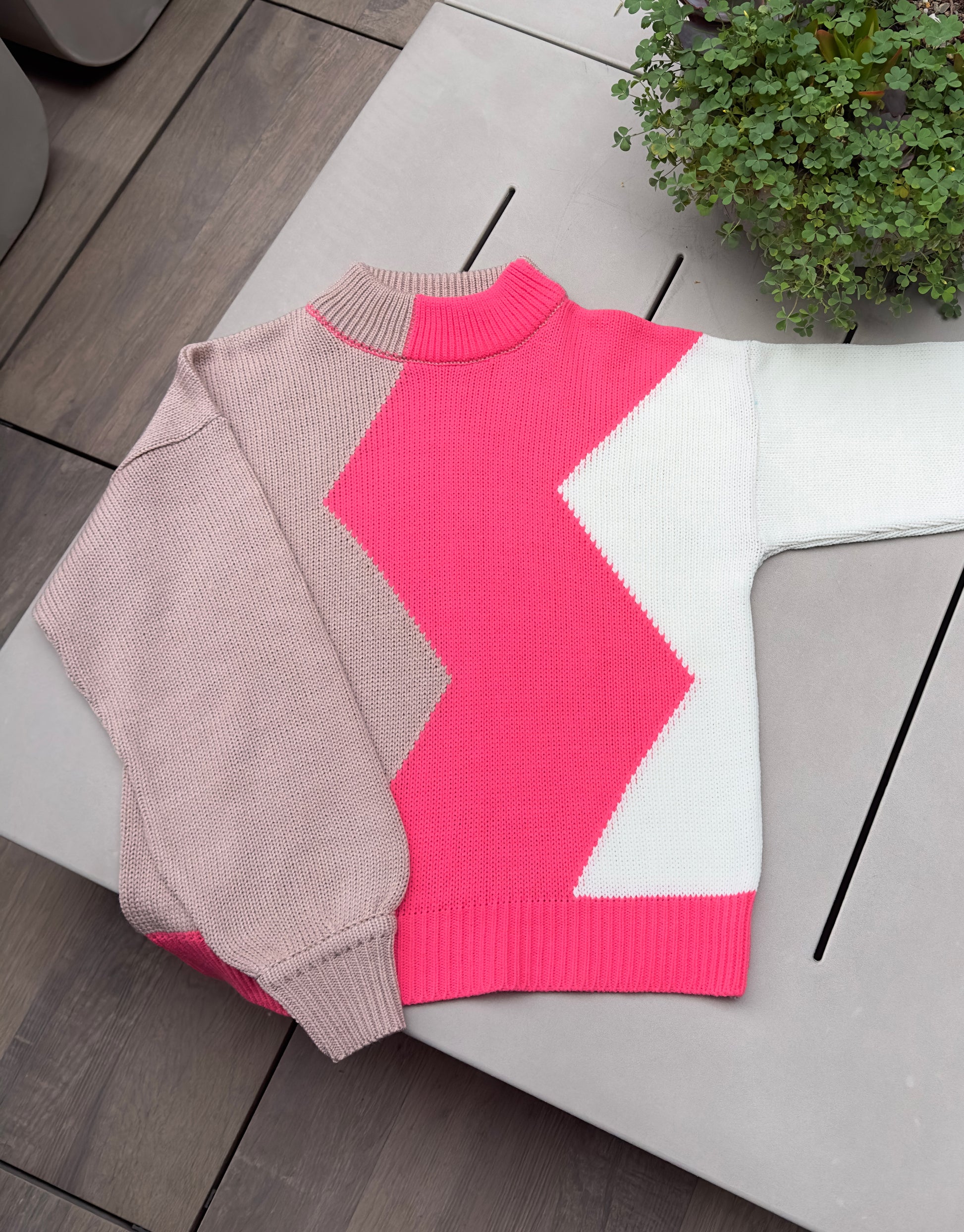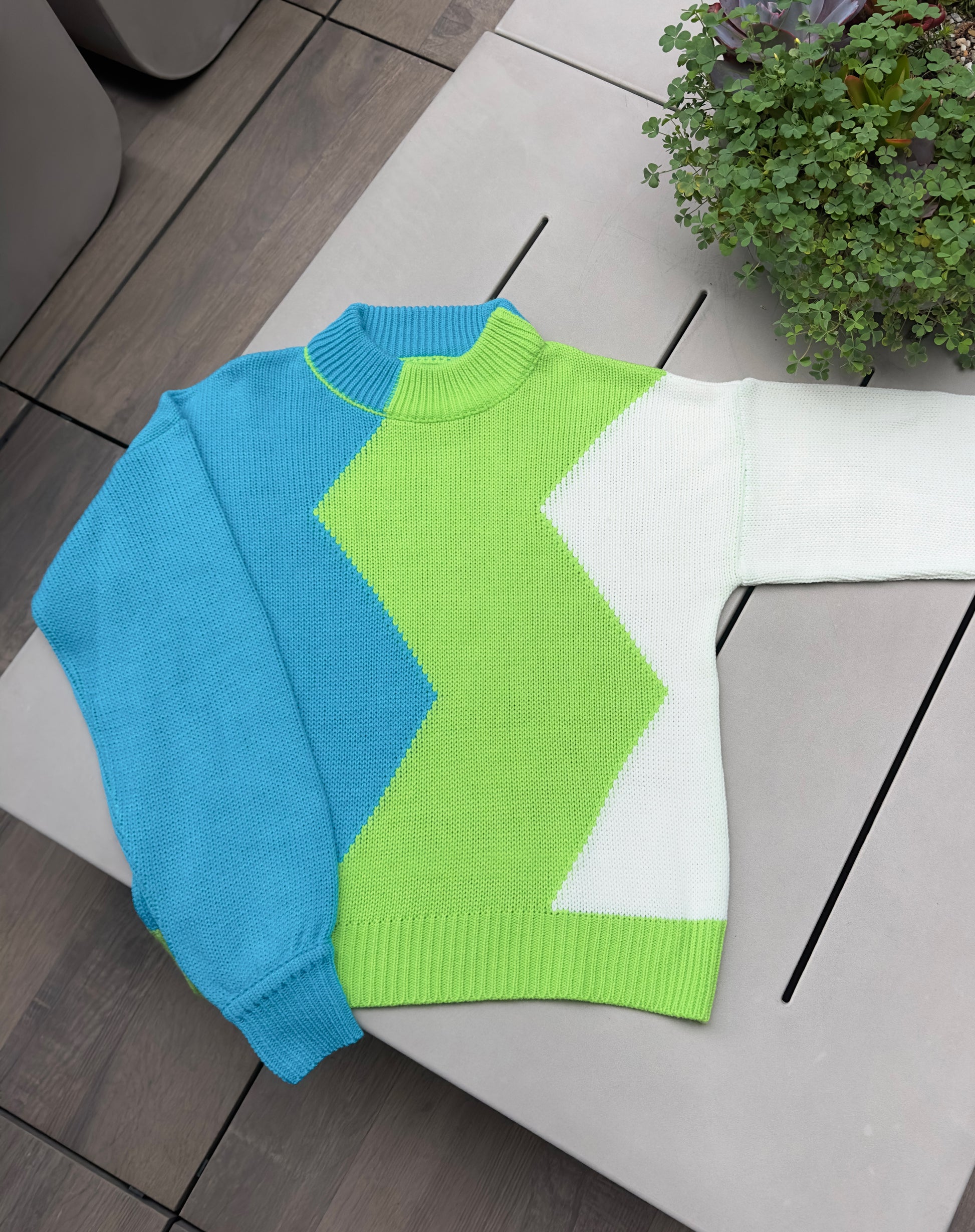 Nuestro buzo ZigZag con semi cuello, con sus duseño de intarsia es elaborado en una mezcla de algodón con acrílico para darle una mayor durabilidad.