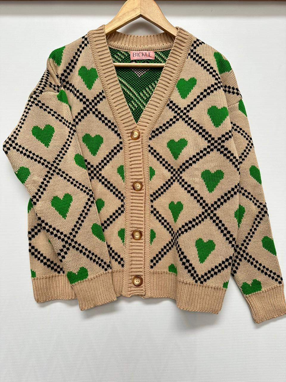 Nuestro cárdigan Dallas con su diseño en corazones y rombos es elaborado en una mezcla de algodón con acrílico para darle una mayor durabilidad