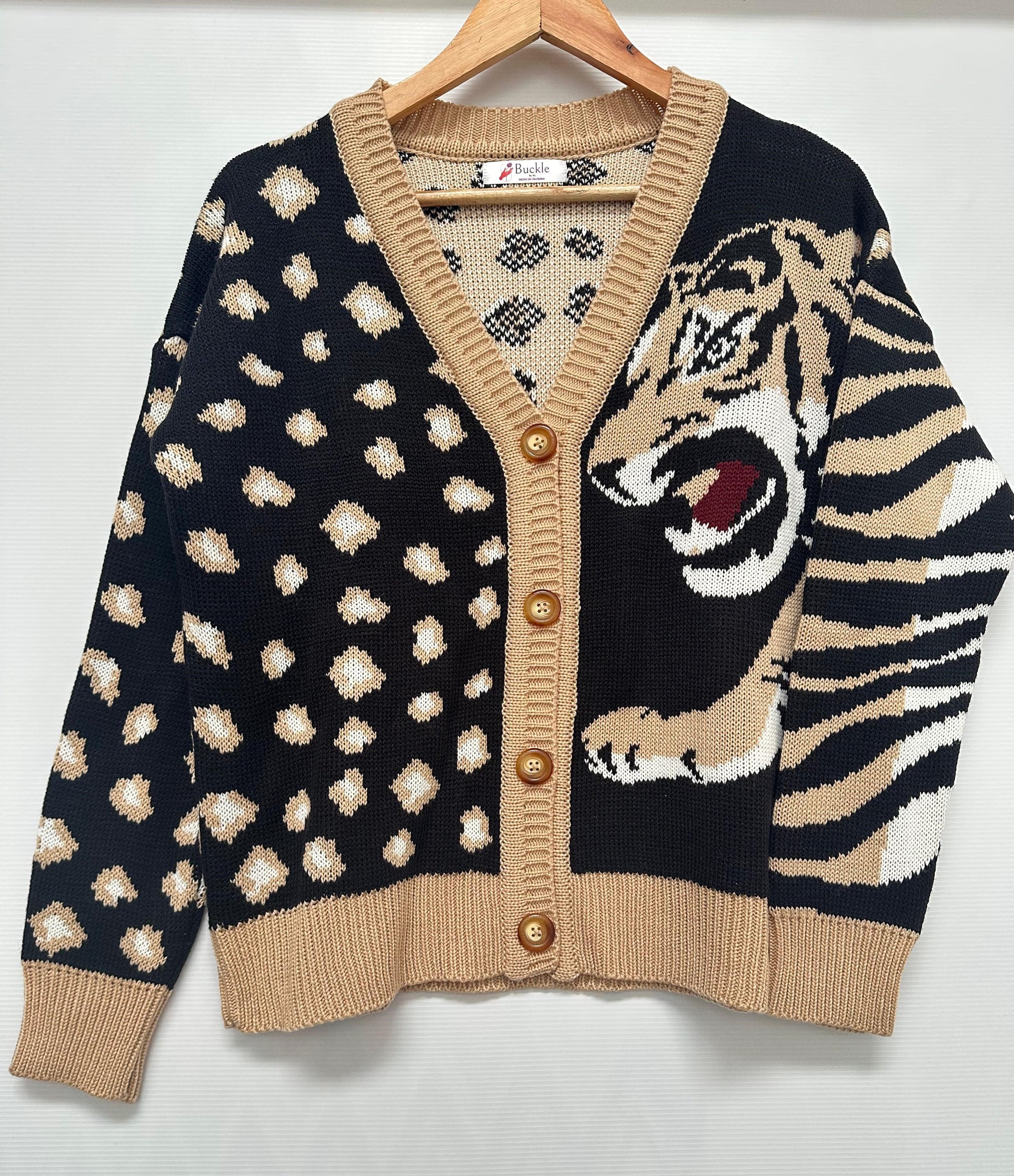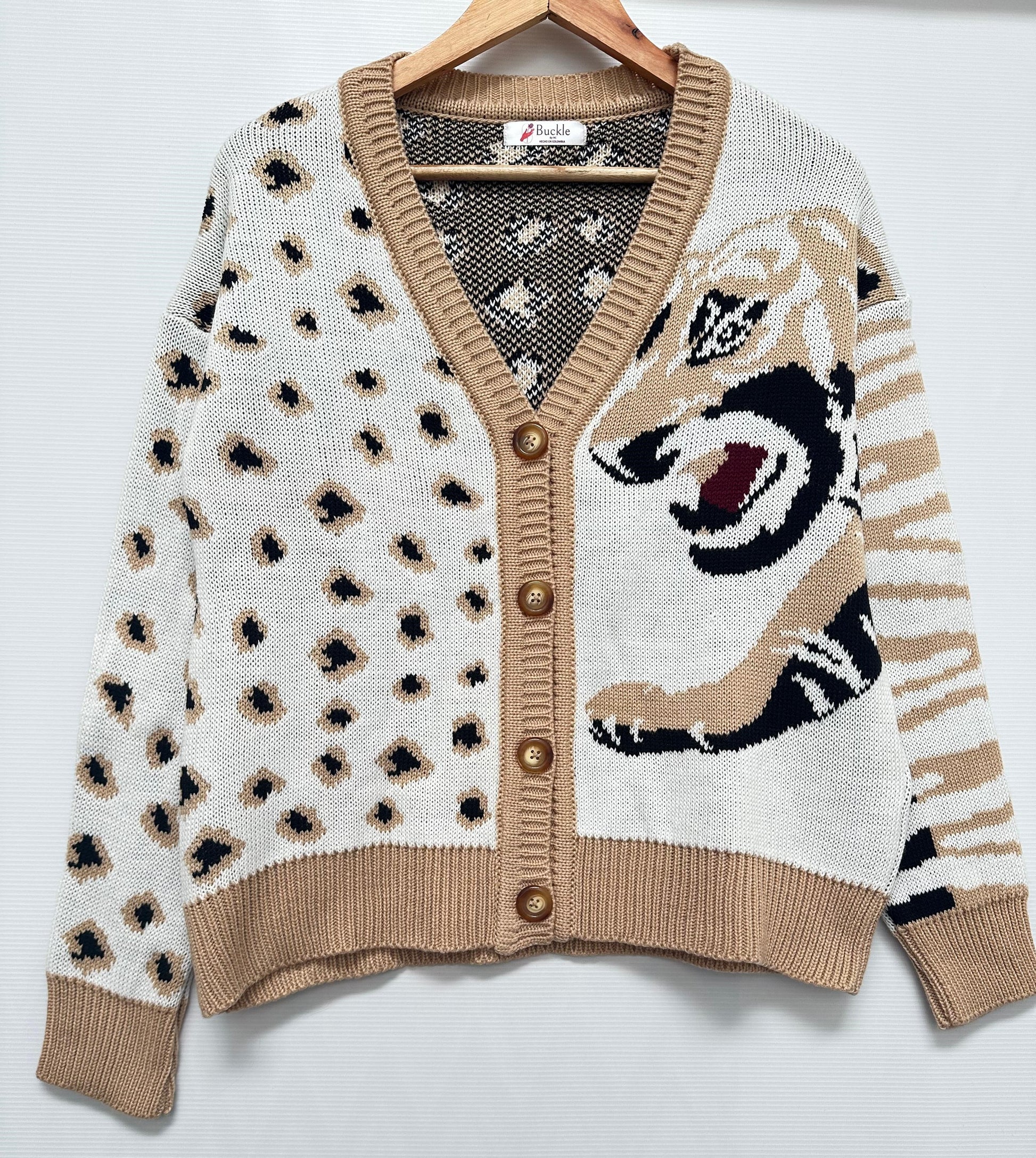 Nuestro cárdigan Zambia animal print es elaborado en una mezcla de algodón con acrílico para darle una mayor durabilidad